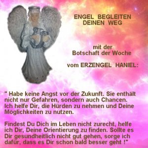 Datum: 11.07.2016Die Montagsbotschaft vom Erzengel Haniel. Erzengel Haniel gibt Euch für diese Woche die Botschaft. Hört, was er rät