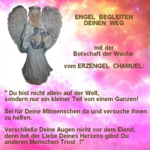 Datum: 27.06.2016Wie angekündigt: Jeden Montag eine Botschaft der Erzengel. Heute die Botschaft vom Erzengel Chamuel. Hört zu.....